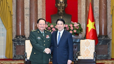 ທ່ານປະທານປະເທດ ເລືອງເກື່ອງ ຕ້ອນຮັບຮອງປະທານຄະນະພັກການທະຫານສູນກາງ ຈີນ