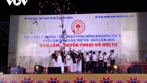 (VOVWORLD) - ດ້ວຍຫົວຂໍ້ “ບາວເລິມ - ເທບນິຍາຍ ແລະ ເຕົ້າໂຮມ”, ທີ່ຄ່ຳຄືນໄຂວັນບຸນ, ບັນດານັກສິລະປິນຊາວເຜົ່າ: ມະ, ເກີຮໍ, ຈູຣູ, ເມນົງ… ໄດ້ສະແດງການຕີຄ້ອງທີ່ເປັນເອກະລັກສະເພາະຂອງຊົນເຜົ່າຕົນ