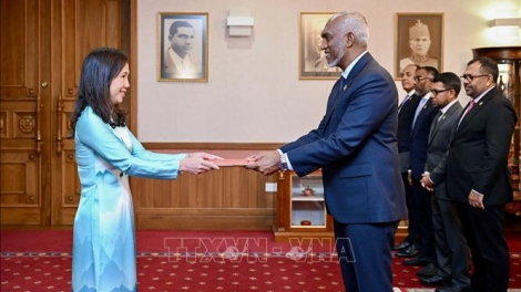 (VOVWORLD) - ວັນທີ 9 ກັນຍາ, ທ່ານເອກອັກຄະລັດຖະທູດ ຫວຽດນາມ ປະຈຳ ສີລັງກາ ນາງ ຈິ້ງທິເຕິມ ໄດ້ເຂົ້າຍື່ນສານຕາຕັ້ງຂອງທ່ານເລຂາທິການໃຫຍ່, ປະທານປະເທດ ຫວຽດນາມ ໂຕເລິມ ກັບທ່ານປະທານາທິບໍດີ Maldives, Mohamed Muizzu.
