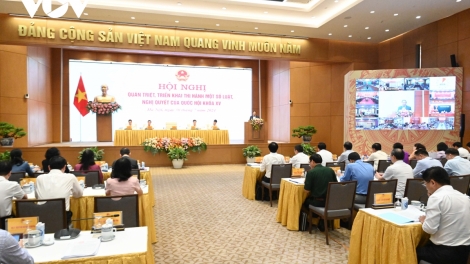 (VOVWORLD) - ຕອນເຊົ້າວັນທີ 30 ກໍລະກົດ, ຢູ່ຮ່າໂນ້ຍ, ທ່ານນາຍົກລັດຖະມົນຕີ ຫວຽດນາມ ຟ້າມມິງຈິງ ໄດ້ເປັນປະທານກອງປະຊຸມເຊື່ອມຊຶມ, ຜັນຂະຫຍາຍປະຕິບັດກົດໝາຍ, ມະຕິຈຳນວນໜຶ່ງຂອງສະພາແຫ່ງຊາດຊຸດທີ XV. ກອງປະຊຸມໄດ້ຈັດຂຶ້ນແບບເຊິ່ງໜ້າຢູ່ສຳນັກງານລັດຖະບານ ແລະ ໄດ້ເຊື່ອມຕໍ່ກັບ 63 ແຂວງ, ນະຄອນຂຶ້ນກັບສູນກາງ.