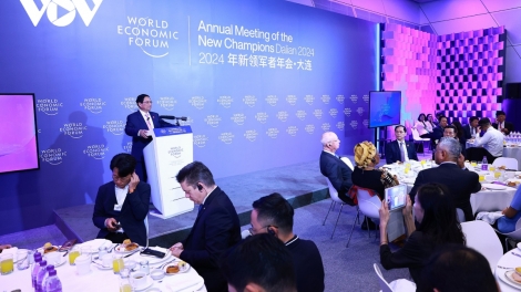 (VOVWORLD) - ໃນຂອບເຂດການເຂົ້າຮ່ວມກອງປະຊຸມເວທີປາໄສເສດຖະກິດໂລກ (WEF) ຕະຫຼຽນ, ຈີນ (25 – 27 ມິຖຸນາ), ຕອນເຊົ້າວັນທີ 26 ມິຖຸນາ, ທ່ານນາຍົກລັດຖະມົນຕີ ຫວຽດນາມ ຟ້າມມິງຈິງ ພ້ອມກັບທ່ານສາດສະດາຈານ Klaus Schwab, ຜູ້ກໍ່ຕັ້ງທັງເປັນປະທານຝ່າຍບໍລິຫານ WEF ເປັນປະທານວາລະປຶກສາຫາລື ກັບການນຳຂອງກຸ່ມບໍລິສັດໃຫຍ່ 20 ແຫ່ງຂອງ WEF.