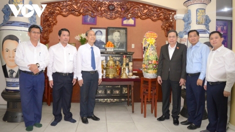 (VOVWORLD) - ຕອນເຊົ້າວັນທີ 25 ມັງກອນ, ຢູ່ນະຄອນ ໂຮ່ຈີມິນ, ທ່ານປະທານສະພາແຫ່ງຊາດ ຫວຽດນາມ ເຈິ່ນແທັງເໝິນ ໄດ້ໄດ້ຖະຫວາຍທູບທຽນອາໄລຫາທ່ານອະດີດປະທານສະພາແຫ່ງຊາດ ຫງວຽນຫືວທໍ້ ເນື່ອງໃນໂອກາດບຸນປີໃໝ່ປີມະເມຍ 2026.
