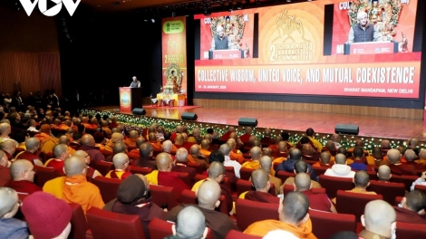 (VOVWORLD) - ດ້ວຍຫົວຂໍ້ “ປັນຍາລວມໝູ່, ສຽງເວົ້າເປັນເອກະພາບ ແລະ ດຳລົງຊີວິດຮ່ວມກັນຢ່າງກົມກ່ຽວ” ກອງປະຊຸມສຸດຍອດພຸດທະສາສະໜາທົ່ວໂລກຄັ້ງທີ 2 ມຸ່ງໄປເຖິງການເຮັດໃຫ້ບົດບາດຂອງທຳມະພຸດທະສາສະໜາໃນຂະບວນວິວັດຊຸກຍູ້ສັນຕິພາບ, ຄວາມສະຫງົບ ແລະ ຜາສຸກໃຫ້ແກ່ມະນຸດຜ່ານການເຈລະຈາ, ການຮ່ວມມື ແລະ ຈິດໃຈສາມັກຄີ.