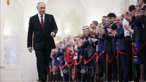 (VOVWORLD) - ຕອນບ່າຍວັນທີ 07 ພຶດສະພາ, ຢູ່ ວັງ Kremlin, ທ່ານປະທານາທິບໍດີ ລັດເຊຍ Vladimir Putin ໄດ້ສາບານຕົວເຂົ້າຮັບດຳລົງຕຳແໜ່ງ ສະໄໝທີ 5 ໂດຍຊ່ອງໜ້າການເປັນສັກຂີພິຍານຂອງບັນດາສະມາຊິກໃນສະພາສູງ ແລະ ສະພາຕ່ຳ ລັດເຊຍ ແລະ ຜູ້ພິພາກສາສານລັດຖະທຳມະນຸນ.