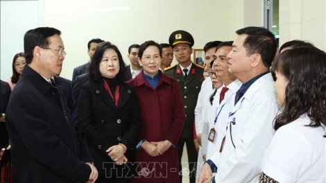 (VOVWORLD) - ເນື່ອງໃນໂອກາດສະເຫຼີມສະຫຼອງວັນແພດໝໍ ຫວຽດນາມ ທີ 27 ກຸມພາ, ຕອນເຊົ້າວັນທີ 25 ກຸມພາ, ທ່ານປະທານປະເທດ ຫວຽດນາມ ຫວໍວັນເຖືອງ ໄດ້ໄປຢ້ຽມຢາມ, ອວຍພອນບັນດາພະຍາບານ, ທ່ານໝໍ, ພະນັກງານການແພດ ຢູ່ສຸກສາລີຕາແສງ ແທງລອງ ແລະ ສູນສາທາລະນະສຸກເມືອງ ແທັງລຽມ, ແຂວງຮ່ານາມ ຂອງ ຫວຽດນາມ.