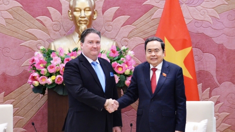(VOVWORLD) - ຕອນບ່າຍວັນທີ 13 ມັງກອນ, ຢູ່ຫໍສະພາແຫ່ງຊາດ, ຮ່າໂນ້ຍ, ທ່ານ ເຈິ່ນແທັງເໝິນ ປະທານສະພາແຫ່ງຊາດ ຫວຽດນາມ ໄດ້ໃຫ້ການຕ້ອນຮັບທ່ານນາງເອກອັກຄະລັດຖະທູດ ກຳປູເຈຍ Chea Kimtha, ທ່ານເອກອັກຄະລັດຖະທູດ ອາເມລິກາ Marc Knapper ແລະ ທ່ານເອກອັກຄະລັດຖະທູດ ຟີລິບປິນ Maynardo L.B. Montealegrea ເຂົ້າຢ້ຽມອຳລາ ເນື່ອງໃນໂອກາດສິ້ນສຸດອາຍຸການປະຕິບັດງານຢູ່ ຫວຽດນາມ.