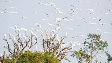 (VOVWORLD) -ເກິ່ນເທີ ນອນຢູ່ເຂດທົ່ງພຽງແມ່ນ້ຳຂອງ ທາງພາກໃຕ້ຫວຽດນາມ ແມ່ນສະຖານທີ່ລືຊື່ ດ້ວຍຄວາມງາມທຳມະຊາດ, ບັນດາທົ່ງໄຮ່ທົ່ງນາຂຽວອຸ່ມທຸ່ມກວ້າງໃຫ່ຍຈົນສຸດສາຍຕາ, ບັນດາສວນຕົ້ນໄມ້ກິນໝາກທີ່ສຸກເຫຼືອງ. ທັດຊະນີຍະພາບຢູ່ແຫ່ງນີ້ກໍ່ມີຄວາມງົດງາມ ແລະ ສະຫງົບສຸກ ຂະນະທີ່ໄດ້ປະກົດມີຝູງນົກຍາງຂາວພວມບິນເຈີນໄປເຈີນມາ ໃນຍາມແລງທຸກໆວັນ, ອັນໄດ້ປົກຄຸມທ້ອງຟ້າແຈໜຶ່ງໃນບໍລິເວນສວນນົກຍາງ ບັ່ງລັງ ເຊິ່ງແມ່ນສວນນົກທີ່ມີຄວາມເປັນເອກະລັກສະເພາະຢູ່ດິນແດນທາງທິດຕາເວັນຕົກຂອງພາກໃຕ້
