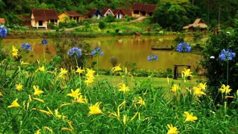 ໝູ່ບ້ານກູເລີ່ນທີ່ຮົກເຮື້ອ ດ້ວຍເຮືອນຮ້ານຕັ້ງແບບກະແຈກກະຈາຍຂອງຂອງຊາວເຜົ່າກະຮໍ ໃນທ່າມກາງດິນຟ້າອາກາດເຢັນສະບາຍຢູ່ເຂດພູພຽງລາງບຽງ ໃນແຂວງເລີມດົງ