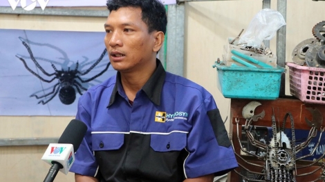 (VOVWORLD) -ດ້ວຍບັນດາແນວຄວາມຄິດທີ່ມີຫົວຄິດປະດິດສ້າງ, ກ້າຄິດ ກ້າທຳ, Kang Sothea – ນາຍຊ່າງຜູ້ໜຶ່ງ ໄດ້ໃຊ້ເຄື່ອງອາໄຫຼ່ລົດຈັກເສດເຫຼືອ ສ້າງເປັນບັນດາຜະລິດຕະພັນສິລະປະຢູ່ແຂວງ Kandal ປະເທດ ກຳປູເຈຍ, ອ້າຍໄດ້ຮັບຄວາມຮັກແພງຈາກທຸກຄົນ ດ້ວຍບັນດາຄວາມເມົາມົວຂອງຕົນເອງ ແລະ ຄວາມປາດຖະໜາ ຢາກປະກອບສ່ວນກຳລັງແຮງຂອງຕົນ ເພື່ອຮັກສາສິ່ງແວດລ້ອມໃນວົງຄະນະຍາດ.