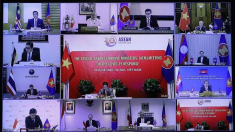 (VOVWORLD) -ຕາມແຜນການແລ້ວ, ກອງປະຊຸມ ລັດຖະມົນຕີເສດຖະກິດອາຊຽນພິເສດ ແລະ ອາຊຽນ + 3 ພິເສດກ່ຽວກັບ Covid – 19 ໄດ້ດຳເນີນໃນວັນທີ 4 ມິຖຸນາ ຢູ່ຮ່າໂນ້ຍ.