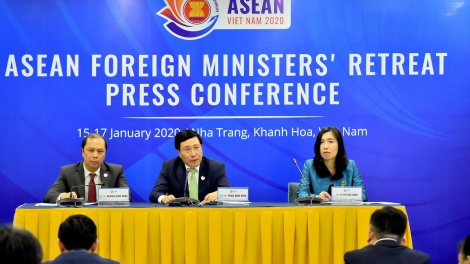 (VOVWORLD) - ຕອນບ່າຍວັນທີ 17 ມັງກອນ, ທ່ານຮອງນາຍົກລັດຖະມົນຕີ, ລັດຖະມົນຕີການຕ່າງປະເທດຫວຽດນາມ ຟ້າມບິ່ງມິງ ໄດ້ເປັນປະທານກອງປະຊຸມຖະແຫຼງຂ່າວສາກົນ ໂດຍແຈ້ງໃຫ້ຊາບກ່ຽວກັບໝາກຜົນທີ່ບັນລຸໄດ້ໃນກອງປະຊຸມວົງແຄບ ບັນດາລັດຖະມົນຕີການຕ່າງປະເທດ ອາຊຽນ (AMM Retreat) ເຊິ່ງໄດ້ດໍາເນີນໃນຕອນເຊົ້າວັນທີ 17 ມັງກອນ, ຢູ່ຍາຈາງ, ແຂວງແຄ໊ງຮວ່າ.
