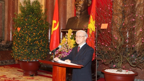 ເລຂາທິການໃຫຍ່ຫງວຽນຟູຈ້ອງອວຍພອນບຸນເຕັດບັນດາການນຳ,ອະດີດການນຳພັກ,ລັດ