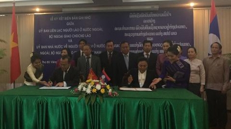 (vovworld) - ພິທີເຊັນບົດບັນທຶກຄວາມເຂົ້າໃຈລະຫວ່າງຄະນະກຳມະການພົວ ພັນຄົນເຊື້ອຊາດລາວ ຢູ່ຕ່າງປະເທດ ແລະ ຄະນະກຳມະການແຫ່ງລັດກ່ຽວກັບຊາວຫວຽດນາມ ອາໄສຢູ່ຕ່າງປະເທດ ໄດ້ລົງນາມໃນແຜນການຮ່ວມມືໄລຍະ 2016 – 2020.