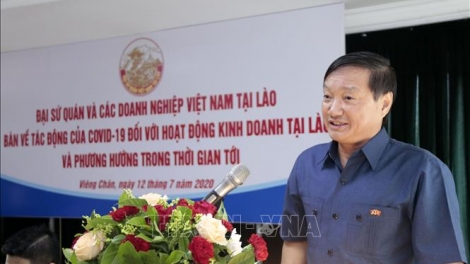 (VOVWORLD) -ວັນທີ 12 ກໍລະກົດ, ຢູ່ນະຄອນຫຼວງ ວຽງຈັນ, ສະຖານທູດ ຫວຽດນາມ ປະຈຳ ລາວ ໄດ້ສົມທົບກັບສະມາຄົມວິສາຫະກິດ ຫວຽດນາມ ການຮ່ວມມື ແລະ ລົງທຶນ ຢູ່ ລາວ ຈັດຕັ້ງການໂອ້ລົມສົນທະນາກັບບັນດາວິສາຫະກິດເພື່ອປຶກສາຫາລືກ່ຽວກັບຜົນກະທົບຂອງໂລກລະບາດໂຄວິດ-19 ຕໍ່ກັບການເຄື່ອນໄຫວດຳເນີນທຸລະກິດຢູ່ ລາວ ແລະ ທິດທາງໃນໄລຍະຈະມາເຖິງ.