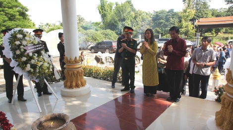 (VOVWORLD) -ພິທີແມ່ນໂອກາດເພື່ອໃຫ້ປະຊາຄົມຊາວຫວຽດນາມ ຢູ່ ລາວ ແລະ ປະຊາຊົນ ລາວ ອາໄລຫາ, ເຊີດຊູ ແລະ ສະແດງຄວາມຮູ້ບຸນຄຸນບັນດານັກຮົບວິລະຊົນ ຫວຽດນາມ ແລະ ລາວ ທີ່ໄດ້ເສຍສະຫລະຊີວິດເພື່ອຊາດ