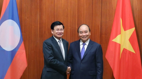 ທ່ານນາຍົກລັດຖະມົນຕີຫງວຽນຊວັນຟຸກເຈລະຈາກັບທ່ານນາຍົກລັດຖະມົນຕີລາວ ທອງລຸນ ສີສຸລິດ