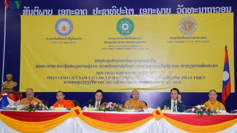 (VOVWORLD) - ຕອນເຊົ້າວັນທີ 9 ທັນວາ ຢູ່ນະຄອນຫຼວງວຽງຈັນ ໄດ້ດໍາເນີນກອງປະຊຸມສໍາມະນາ ວິທະຍາສາດສາກົນ ດ້ວຍຫົວຂໍ້ “ພຸດທະສາສະໜາຫວຽດນາມ ຢູ່ລາວ: ປະຫວັດຄວາເປັນມາ, ສະພາບຕົວຈິງ ແລະ ການກໍານົດທິດພັດທະນາ”.