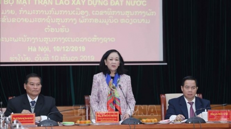 (VOVWORLD) -ຕອນບ່າຍວັນທີ 10 ທັນວາ, ຢູ່ຮ່າໂນ້ຍ, ທ່ານນາງ ເຈືອງທິມາຍ, ຫົວໜ້າຄະນະຂົນຂວາຍປະຊາຊົນສູນກາງ ໄດ້ໃຫ້ການຕ້ອນຮັບຄະນະຜູ້ແທນສູນກາງແນວລາວສ້າງຊາດ.