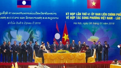 (VOVWORLD) -ທີ່ການປະຊຸມຂ່າວພາຍຫລັງສິ້ນສຸດກອງປະຊຸມຄັ້ງທີ 41 ຂອງຄະນະກຳມະການຮ່ວມມືທະວີພາຄີ ລະຫວ່າງລັດຖະບານຫວຽດນາມ - ລາວ, ວັນທີ 6 ມັງກອນ, ທ່ານນາຍົກລັດຖະມົນຕີ ຫວຽດນາມຫງວຽນຊວນຟຸກ ແລະ ທ່ານນາຍົກລັດຖະມົນຕີ ລາວ ທອງລຸນ ສີສຸລິດ ເນັ້ນຫນັກວ່າ ນີ້ແມ່ນກອງປະຊຸມປະສົບຜົນສຳເລັດ ແລະ ຢືນຢັນ ໝາກຜົນຂອງ 12 ໂຄງການຮ່ວມມືໃນປີ 2018 ແລະ ລົງນາມໃນເອກະສານຮ່ວມມື 6 ສະບັບໃນປີ 2019.