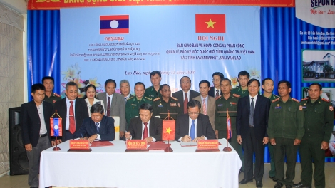 (VOVWORLD) -ວັນທີ 25 ທັນວາ, ຢູ່ເທດສະບານເມືອງລາວບາວ, ເມືອງ ເຮື໊ອງຮ໊ວາ, ແຂວງກວາງຈີ້, ໄດ້ດຳເນີນກອງປະຊຸມມອບຮັບແບບແຕ້ມແຜນວາດສະບັບສົມບູນ ແລະ ການແບ່ງໜ້າທີ່ຄວາມຮັບຜິດຊອບໃນການຄຸ້ມຄອງ, ປົກປັກຮັກສາຫຼັກໝາຍຊາຍແດນແຫ່ງຊາດລະຫວ່າງແຂວງກວາງຈີ້ (ຫວຽດນາມ) ແລະ 2 ແຂວງ ສະຫວັນນະເຂດ, ແຂວງ ສາລະວັນ (ລາວ).