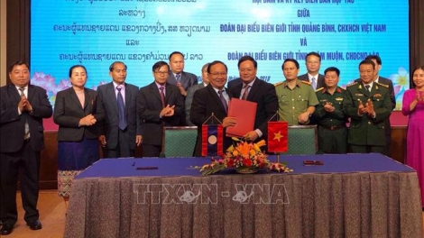 (VOVWORLD) -ບົດບັນທຶກໄດ້ສະແດງອອກເຖິງຄວາມເປັນເອກະພາບສູງໃນການຮ່ວມມືຮອບດ້ານບົນພື້ນຖານການພົວພັນມິດຕະພາບແບບພິເສດ, ຄວາມສາມັກຄີອັນໜຽວແໜ້ນ ລະຫວ່າງ ສອງພັກ, ສອງລັດ ແລະ ປະຊາຊົນສອງປະເທດ ຫວຽດນາມ - ລາວ ເວົ້າລວມ, ລະຫວ່າງສອງແຂວງ ກວ໋າງບິ່ງ - ຄໍາມ່ວນ ເວົ້າສະເພາະ.
