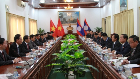 (VOVWORLD) -ຕອນເຊົ້າວັນທີ 31 ຕຸລາ, ຢູ່ນະຄອນຫຼວງວຽງຈັນ, ລາວ, ທ່ານ ເຈິ່ນເກິ໋ມຕູ໊ ເລຂາສູນກາງພັກ, ປະທານຄະນະກໍາມະການກວດກາສູນກາງພັກກອມມູນິດຫວຽດນາມ ໄດ້ມີການເຈລະຈາກັບ ທ່ານ ບຸນທອງ ຈິດມະນີ, ກໍາມະການກົມການເມືອງ, ເລຂາສູນກາງພັກ, ຮອງນາຍົກລັດຖະມົນຕີ, ປະທານຄະນະກວດກາສູນກາງພັກ ປະຊາຊົນປະຕິວັດລາວ.