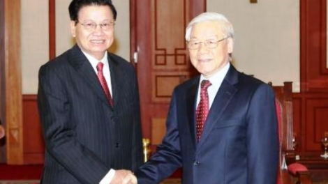 ທ່ານເລຂາທິການໃຫຍ່ ຫງວຽນຝູຈ້ອງ ຕ້ອນຮັບທ່ານນາຍົກລັດຖະມົນຕີ ສປປ ລາວ ທອງລຸນ ສີສຸລິດ