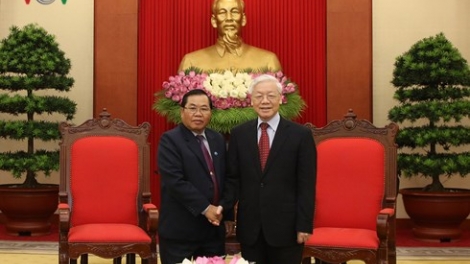 (VOVWORLD) -ຕອນບ່າຍວັນທີ 17 ກໍລະກົດ, ຢູ່ສໍານັກງານສູນກາງພັກ, ທ່ານເລຂາທິການໃຫຍ່ ຄະນະບໍລິຫານງານສູນກາງພັກກອມມູນິດຫວຽດນາມ ຫງວຽນຟຸຈ້ອງ ໄດ້ໃຫ້ການຕ້ອນຮັບຄະນະຜູ້ແທນສະພາແຫ່ງຊາດລາວ ໂດຍທ່ານ ແສງນວນ ໄຊຍະລາດ ເລຂາທິການສູນກາງພັກ, ຮອງປະທານສະພາແຫ່ງຊາດ ແຫ່ງ ສປປ. ລາວ ນໍາໜ້າຄະນະ ພວມມີການຢ້ຽມຢາມຫວຽດນາມ.