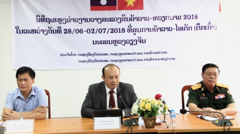 (VOVWORLD) -ຕອນບ່າຍວັນທີ 29 ມິຖຸນາ, ຢູ່ນະຄອນຫຼວງວຽງຈັນ, ປະເທດລາວ, ໃນຂອບເຂດເຂົ້າຮ່ວມງານຕະຫຼາດນັດການຄ້າລາວ - ຫວຽດນາມ 2018