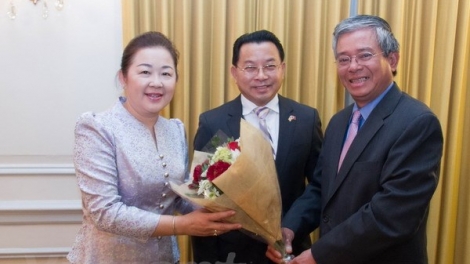 ເອກອັກຄະລັດຖະທູດຫວຽດນາມປະຈຳອາເມລິກາຟ້າມກວາງວິງ ອວຍພອນປີໃໝ່ສະຖານທູດລາວ