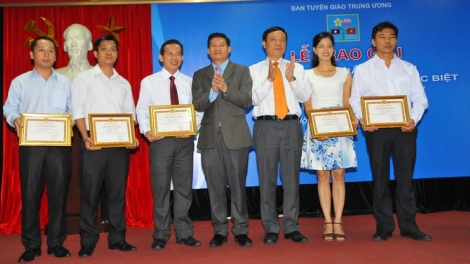 (VOVWORLD) - ຕອນເຊົ້າວັນທີ 15 ກັນຍາ, ທີ່ຮ່າໂນ້ຍ, ຄະນະໂຄສະນາສຶກສາສູນກາງ ຫວຽດນາມ ຈັດຕັ້ງພິທີມອບລາງວັນການເສັງປະລະໄນ “ຊອກຮູ້ປະຫວັດແຫ່ງການພົວພັນແບບພິເສດ ຫວຽດນາມ - ລາວ”.