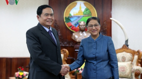 (VOVWORLD) -ທ່ານນາງປະທານສະພາແຫ່ງຊາດລາວ ປານີ ຢ່າທໍ່ຕູ້ ໄດ້ໃຫ້ການຕ້ອນຮັບຄະນະຜູ້ແທນຂັ້ນສູງ ຄະນະກຳມະການສູນກາງແນວໂຮມປະເທດຊາດຫວຽດນາມ ໂດຍທ່ານ ເຈິ່ນແທງເມິນ, ປະທານ ຄະນະກຳມະການສູນກາງແນວໂຮມປະເທດຊາດຫວຽດນາມ ນຳໜ້າ