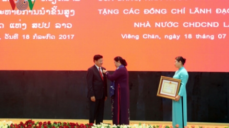(VOVWORLD) -ຕອນບ່າຍວັນທີ 18 ກໍລະກົດ, ຢູ່ສູນກອງປະຊຸມແຫ່ງຊາດລາວ, ທີ່ນະຄອນຫຼວງວຽງຈັນ, ທ່ານນາງ ຕ່ອງທິຟ໋ອງ, ກຳມະການກົມການເມືອງ, ຮອງປະທານຜູ້ປະຈຳການສະພາແຫ່ງຊາດຫວຽດນາມ ໄດ້ປະດັບຫຼຽນໄຊດາວຄຳໃຫ້ທ່ານນາຍົກລັດຖະມົນຕີລາວ ທອງລຸນ ສີສຸລິດ