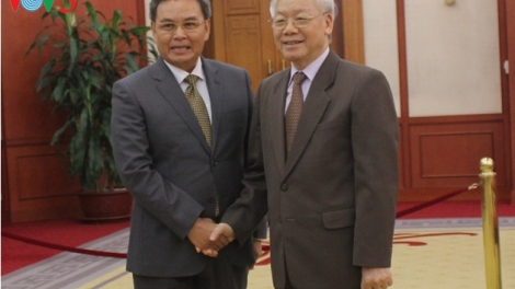 (VOVWORLD) - ຕອນບ່າຍວັນທີ 25 ມິຖຸນາ, ຢູ່ຮ່າໂນ້ຍ, ທ່ານເລຂາທິການໃຫຍ່ຄະນະບໍລິຫານງານສູນກາງພັກກອມມູນິດ ຫວຽດນາມ ຫງວຽນຟູ໋ຈ້ອງ ໄດ້ຕ້ອນຮັບທ່ານ Samdech Heng Samrin, ປະທານກິຕິມະສັກພັກປະຊາຊົນ ກຳປູເຈຍ, ປະທານສະພາແຫ່ງຊາດ ລາຊະອານາຈັກ ກຳປູເຈຍ, ປະທານສະພາຊົນຊາດແນວໂຮມສາມັກຄີພັດທະນາປະເທດຊາດ ກຳປູເຈຍ ນຳໜ້າຄະນະຜູ້ແທນຂັ້ນສູງ ສະພາແຫ່ງຊາດ ແລະ ສະພາຊົນຊາດແນວໂຮມສາມັກຄີພັດທະນາປະເທດຊາດ ກຳປູເຈຍ ມາຢ້ຽມຢາມ ຫວຽດນາມ ຢ່າງເປັນທາງການ.