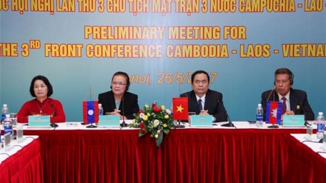 (VOVWORLD) -“ຍາມໃດແນວໂຮມປະເທດຊາດຫວຽດນາມ ກໍ່ຖືເປັນສຳຄັນການເພີ່ມທະວີການພົວພັນຮ່ວມມືກັບແນວໂຮມສາມັກຄີພັດທະນາປະເທດຊາດກຳປູເຈຍ ແລະ ແນວລາວສ້າງຊາດ. ການພົວພັນລະຫວ່າງ 3 ອົງການແນວໂຮມ, ລະຫວ່າງບັນດາໝູ່ຄະນະປະຊາຊົນຂອງ 3 ປະເທດໃນຊຸມປີຜ່ານມານັບມື້ນັບໄດ້ຮັບການປັບປຸງ ແລະ ພັດທະນາ”.