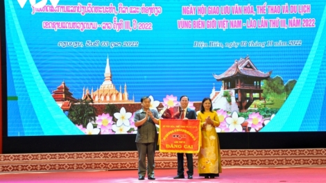 (VOVWORLD) -ວັນທີ 3 ຕຸລາ, ຢູ່ນະຄອນດ້ຽນບິນຝູ, ແຂວງ ດຽນບຽນ, ໄດ້ຈັດຕັ້ງພິທີອັດວັນບຸນພົບປະແລກປ່ຽນວັດທະນະທຳ, ກິລາ ແລະ ການທ່ອງທ່ຽວເຂດຊາຍແດນ ຫວຽດນາມ - ລາວຄັ້ງທີ III ປີ 2022.