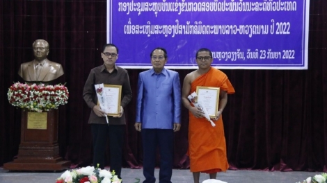 (VOVWORLD) - ຕອນບ່າຍວັນທີ 23 ກັນຍາ ຢູ່ນະຄອນຫຼວງ ວຽງຈັນ, ຄະນະໂຄສະນາອົບຮົມສູນກາງພັກປະຊາຊົນປະຕິວັດ ລາວ ໄດ້ຈັດພິທີສະຫຼຸບ ແລະ ມອບລາງວັນໃຫ້ແກ່ບົດປະພັນທີ່ໄດ້ຮັບລາງວັນໃນການເສັງຂຽນບົດປະພັນວັນນະຄະດີ ເນື່ອງໃນໂອກາດປີສາມັກຄີມິດຕະພາບ ລາວ - ຫວຽດນາມ, ຫວຽດນາມ - ລາວ ປີ 2022.