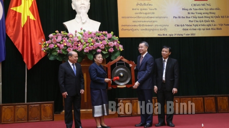 (VOVWORLD) -ຕອນເຊົ້າວັນທີ 19 ກໍລະກົດ, ຢູ່ຫໍສະພາແຫ່ງຊາດ, ທ່ານປະທານສະພາແຫ່ງຊາດ ຫວຽດນາມ ເວືອງດິ່ງເຫວະ ໄດ້ໃຫ້ການຕ້ອນຮັບທ່ານຮອງປະທານປະເທດແຫ່ງ ສປປ ລາວ ບຸນທອງ ຈິດມະນີ ແລະ ຄະນະຜູ້ແທນຂັ້ນສູງ ພັກ, ລັດ ລາວ ທີ່ພວມມີການຢ້ຽມຢາມ ແລະ ເຮັດວຽກຢູ່ ຫວຽດນາມ.