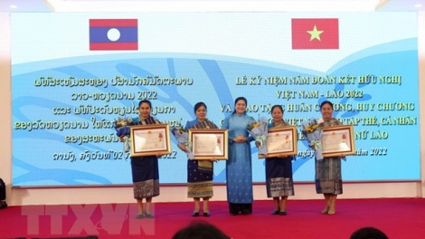 (VOVWORLD) -ຕອນບ່າຍວັນທີ 2 ກໍລະກົດ, ຢູ່ນະຄອນດ່ານັ້ງ, ສະຫະພັນແມ່ຍິງ ຫວຽດນາມ ໄດ້ຈັດພິທີ ສະເຫຼີມສະຫຼອງ ປີສາມັກຄີມິດຕະພາບ ຫວຽດນາມ - ລາວ ປີ 2022 ແລະ ມອບຫຼຽນໄຊ, ຫຼຽນກາແຫ່ງລັດ ຫວຽດນາມ ໃຫ້ແກ່ໝູ່ຄະນະ, ສ່ວນບຸກຄົນຂອງສະຫະພັນແມ່ຍິງລາວ