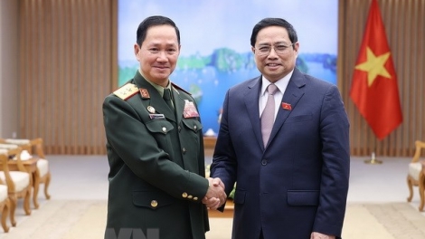 (VOVWORLD) -ຕອນບ່າຍວັນທີ 2 ມິຖຸນາ, ຢູ່ສຳນັກງານລັດຖະບານ, ທ່ານນາຍົກລັດຖະມົນຕີຫວຽດນາມ ຟ້າມມິງຈິງ ໄດ້ໃຫ້ການຕ້ອນຮັບທ່ານພົນຕີ ຄຳລຽນ ອຸທະໄກສອນ ຮອງລັດຖະມົນຕີກະຊວງປ້ອງກັນປະເທດ, ຫົວໜ້າເສນາທິການໃຫຍ່ກອງທັບປະຊາຊົນລາວ. ພວມຢ້ຽມຢາມຫວຽດນາມ ຢ່າງເປັນທາງການ.
