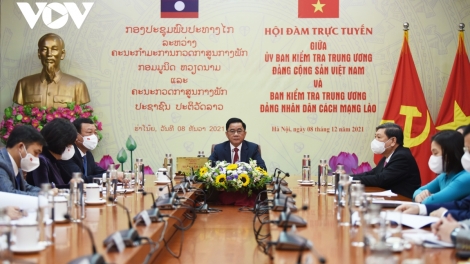 (VOVWORLD) - ຕອນເຊົ້າວັນທີ 8 ທັນວາ, ຢູ່ສຳນັກງານຄະນະພົວພັນຕ່າງປະເທດສູນກາງພັກ, ທ່ານ ເຈິ່ນເກິມຕູ໊ ກຳມະການກົມການເມືອງ, ເລຂາສູນກາງພັກ, ຫົວໜ້າຄະນະກຳມະການກວດກາສູນກາງພັກກອມມູນິດ ຫວຽດນາມ ໄດ້ພົບປະເຈລະຈາທາງໄກກັບທ່ານ ຄຳພັນ ພົມມະທັດ - ກຳມະການກົມການເມືອງ, ເລຂາສູນກາງພັກ, ຫົວໜ້າຄະນະກວດກາສູນກາງພັກປະຊາຊົນປະຕິວັດລາວ, ປະທານອົງການກວດກາແຫ່ງລັດ, ຫົວໜ້າຄະນະປ້ອງກັນ, ຕ້ານການສໍ້ລາດບັງຫຼວງສູນກາງພັກປະຊາຊົນປະຕິວັດ ລາວ.