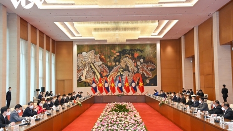 (VOVWORLD) -ທ່ານເລຂາທິການໃຫຍ່ ຫງວຽນຝຸຈ້ອງ ແລະ ທ່ານປະທານສະພາແຫ່ງຊາດ ລາວ ໄຊສົມພອນ ພົມວິຫານ ໄດ້ເນັ້ນໜັກວ່າ ຈະພ້ອມກັນປະຕິບັດຈົນສຸດຄວາມສາມາດຂອງຕົນ ເພື່ອຮັກສາ, ເພີ່ມພູນຄູນສ້າງ ແລະ ຖ່າຍທອດໃຫ້ແກ່ຄົນລຸ້ນຫຼັງກ່ຽວກັບສາຍພົວພັນອັນດີງາມລະຫວ່າງ ຫວຽດນາມ - ລາວ.