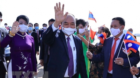(VOVWORLD) -ໂດຍໄດ້ຮັບຄຳເຊື້ອເຊີນຂອງທ່ານເລຂາທິການໃຫຍ່, ປະທານປະເທດ ລາວ ທອງລຸນ ສີສຸລິດ, ທ່ານປະທານປະເທດ ຫວຽດນາມ ຫງວຽນຊວັນຟຸກ ພ້ອມກັບ ພັນລະຍາ ໄດ້ນຳໜ້າຄະນະຜູ້ແທນຂັ້ນສູງ ຫວຽດນາມ ເດີນທາງໄປຢ້ຽມຢາມລາວຢ່າງເປັນທາງການໃນລະຫວ່າງວັນທີ 9 – 10 ສິງຫາ 2021.