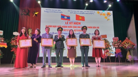 (VOVWORLD) - ຕອນບ່າຍວັນທີ 2 ທັນວາ, ຢູ່ມະຫາວິທະຍາໄລວິງ, ສະມາຄົມມິດຕະພາບ ຫວຽດນາມ - ລາວ ແຂວງ ເງະອານ ໄດ້ສົມທົບກັບມະຫາວິທະຍາໄລວິງ, ກອງບັນຊາການທະຫານປ້ອງກັນຊາຍແດນແຂວງເງະອານ ຈັດຕັ້ງພິທີສະເຫຼີມສະຫຼອງວັນຊາດລາວຄົບຮອບ 45 ປີ.