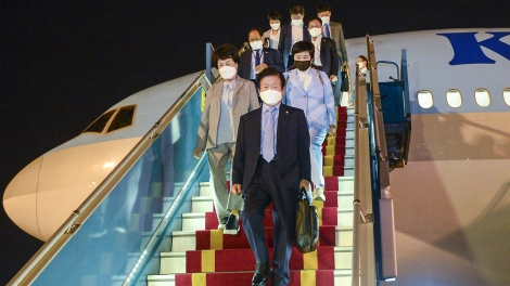 (VOVWORLD) - ທ່ານປະທານສະພາແຫ່ງຊາດ ສ.ເກົາຫຼີ Park Byeong - Seug ພວມຢູ່ຢ້ຽມຢາມຫວຽດນາມ ຢ່າງເປັນທາງການແຕ່ວັນທີ 31 ຕຸລາ- ວັນທີ 4 ພະຈິກ. ການຢ້ຽມຢາມໄດ້ສະແດງໃຫ້ເຫັນສາຍພົວພັນມິດຕະພາບອັນດີງາມ ລະຫວ່າງສອງປະເທດເວົ້າລວມ, ລະຫວ່າງສອງສະພາແຫ່ງຊາດເວົ້າສະເພາະ ໃນສະພາບການທີ່ທັງສອງປະເທດໄດ້ພ້ອມກັນສູ້ຊົນບັນລຸເປົ້າໝາຍຄວບຄູ່ຄື: ການປ້ອງກັນ ຕ້ານໂລກລະບາດໂຄວິດ 19 ແລະ ການພັດທະນາເສດຖະກິດ.