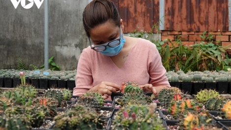 (VOVWORLD) -ຟາມ Flower Land ຂອງເອື້ອຍ ເຈິ່ນຮົ່ງທາວ, ຕັ້ງຢູ່ເຂດຊຸມຊົມ ເງິນທ້ວນ, ເມືອງ ບິ່ງຖຸຍ, ນະຄອນ ເກີນເທີ, ມີເນື້ອທີ່ກ້ວາງປະມານ 750 ຕາແມັດ, ດ້ວຍຕົ້ນໄມ້ກວ່າ 50.000 ຕົ້ນ ແລະ ກວ່າ 100 ແນວພັນກະບອງເພັດ, ດອກບົວຫີນທີ່ແຕກຕ່າງກັນ.