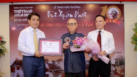 (VOVWORLD) - ພິທີມອບລາງວັນ ບຸ່ຍຊວນຟ໋າຍ - ເພື່ອຄວາມຮັກ ຮ່າໂນ້ຍ ຄັ້ງທີ 10 ປີ 2017 ໄດ້ດຳເນີນໄປໃນກາງເດືອນສິງຫາ ຢູ່ສູນຂ່າວສານແຫ່ງຊາດ, ຮ່າໂນ້ຍ, ເປັນຂີດໝາຍໄລຍະທາງຂອງໜຶ່ງທົດສະວັດແຫ່ງການເຕີບໂຕ ແລະ ພັດທະນາຂອງລາງວັນ. ລາງວັນນີ້ໄດ້ເຊີດຊູບັນດານັກປະພັນ, ບົດປະພັນ, ວຽກງານ, ແນວຄວາມຄິດມີລັກສະນະສິລະປະ ແລະ ວິທະຍາສາດສູງ, ຕິດພັນກັບຊີວິດດ້ານຕ່າງໆຢູ່ຮ່າໂນ້ຍ ແລະ ມີຄວາມຮັກຕໍ່ຮ່າໂນ້ຍ. ບົດຂຽນຂອງບຸ່ຍຮັ່ງ, ນັກຂ່າວ VOV.
