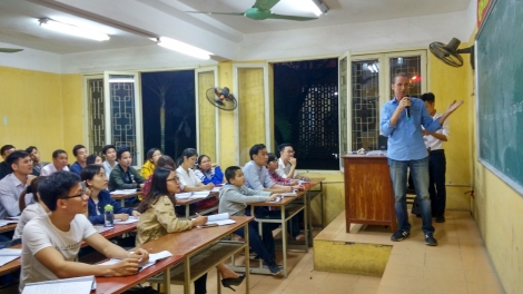ວັນພຸດແຕ່ລະອາທິດ, ມີຫ້ອງຮຽນຢູ່ຕຶກອາຄານ B ຂອງວິທະຍາໄລອຸດສາຫະກຳ ຮ່າໂນ້ຍ ພັດຟົດຟື້ນຂຶ້ນດ້ວຍຂອງການຜັນສຽງພາສາ ອັງກິດ ແລະ ສຽງເວົ້າທີ່ອົບອຸ່ນຂອງອ້າຍຄູ Paul George Harding.