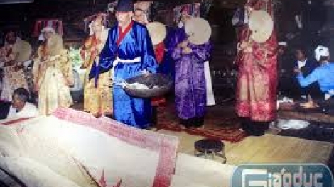 ຊາວເຜົ່າເມື່ອງຢູ່ຮ່ວາບິ່ງ ມີປະເພນີບູຊາບັນພະບຸລຸດ ແລະ ເຊື່ອຖືເທວະດາຟ້າແຖນ. ໃນການດຳລົງຊີວິດ, ເຂົາເຈົ້າເຄົາລົບນັບຖືໝໍຜີ ແລະ ຖືໝໍຜີເປັນຜູ້ເຊື່ອມຕໍ່ລະຫວ່າງເທວະດາຟ້າແຖນກັບໂລກມະນຸດ.