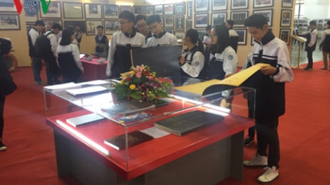(vovworld) - ງານວາງສະແດງດ້ວຍບັນດາເອກະສານ, ວັດຖຸພັນ, ສິງພິມ ແລະ ແຜນທີ່ເກືອບ 100 ຢ່າງ ເຊິ່ງໄດ້ທ້ອນໂຮມຈາກບັນດາແຫຼ່ງວັດຖຸເອກະສານທີ່ໄດ້ປະກາດແລ້ວນັບແຕ່ກ່ອນມາຮອດປະຈຸບັນ